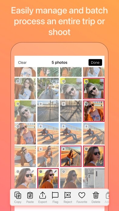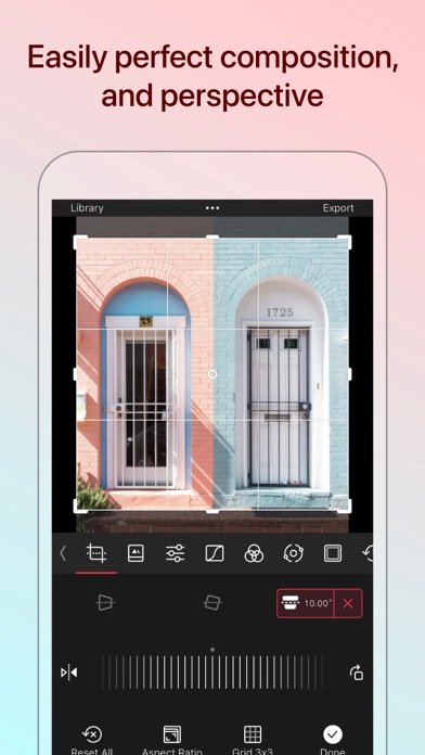 - Export your edited photos directly to Instagram, Facebook or save to camera roll.