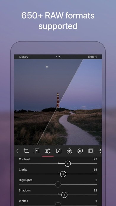 Unlike other editing apps, Darkroom photo editor works directly with Apple’s iCloud Photo Library. That means all your photos are ready for editing immediately after you capture them from your iPhone camera. This premium darkroom photo & video editor supports RAW images, 4K videos, Portrait mode photos and even 8K video editing within single app. The app interface is super intuitive and performs very fast on all iOS devices.