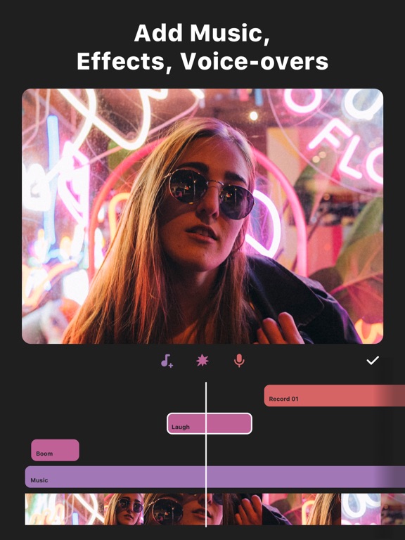 Adding Text & Stickers: Tap on Text button to add titles, captions or subtitles. Choose from hundreds of animated text styles. Similarly, tap on Sticker to add emojis, GIFs and animated stickers to make videos more engaging and fun.