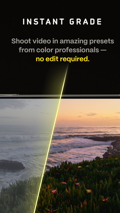 - Instant Grade feature lets you apply cinematic color presets with one tap.